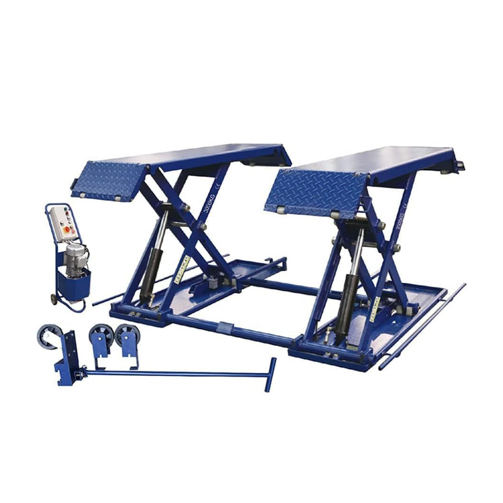 ✅ Low profile floor-plate. Durable powder coat finish. ✅ Manual safety locking system. Driven by dual hydraulic cylinders ✅ Mechanical locking system, w/single point safety latches in each column. Chain type lifting system. Steel wire rope equalizing cables ✅ Adiustable lift pads and adapters. ✅ Multi-voltage power supply is available for electrical requirements.