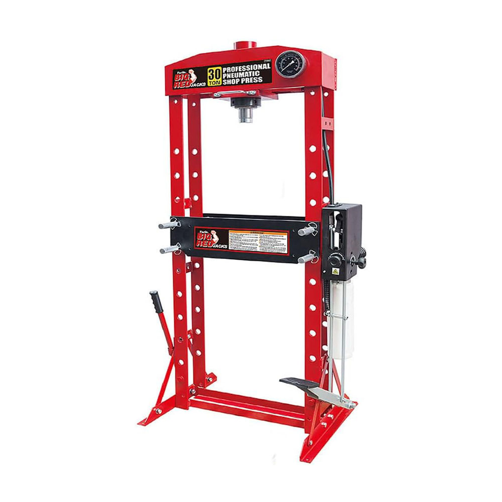 Capacity: 30Ton Material: Steel;Color: Red Weight: 350.5lbs. Package Size: 66.9*32.8*11.8 inches The heavy-duty steel H-frame hydraulic garage/workshop floor press is designed for straightening, bending, pressing, and stamping. You can use it to remove and install bushings, bearings, ball joints, U-joints, pulleys, and gears Application: Hydraulic Shop Press are designed for automotive, truck, implement, fleet, and industrial repair shops where pressingbending , bending, straightening, forming ,holding required