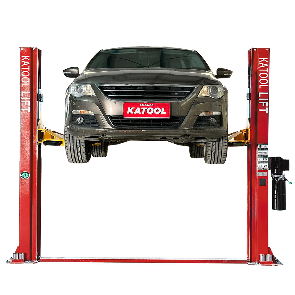 The Katool KT-H120D 12,000lbs Two Post Lift is a robust auto lift designed for powerful performance. With a lifting capacity of 12,000lbs, this 2 post lift ensures efficient and secure lifting. The manual safety release from a single side adds convenience and safety. Featuring a symmetric arm design, base plate configuration, and dual hydraulic chain-drive cylinders, it guarantees stability during operation. The lift is equipped with rubber pad door opening protection, screw-on pads, and extension support adaptor sets of +100mm for added versatility. Powered by a top-level hydraulic system, it operates seamlessly with a 220V/60HZ/1PH configuration. *Concrete thickness must be at least 5.9 (150 MM) with a 3000 PSI rating. Failure to install this lift on the proper concrete could result in serious injury or death! It is the customers responsibility to verify concrete thickness and strength before purchase and installation.