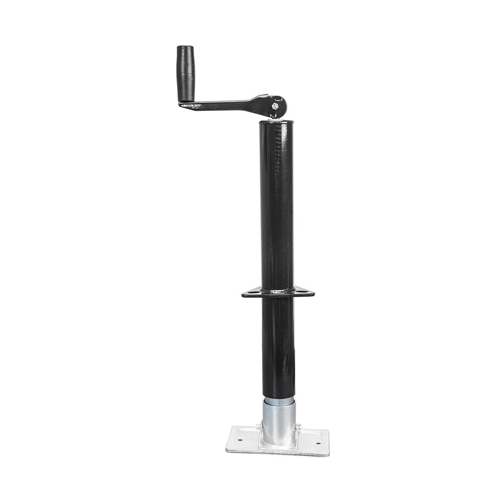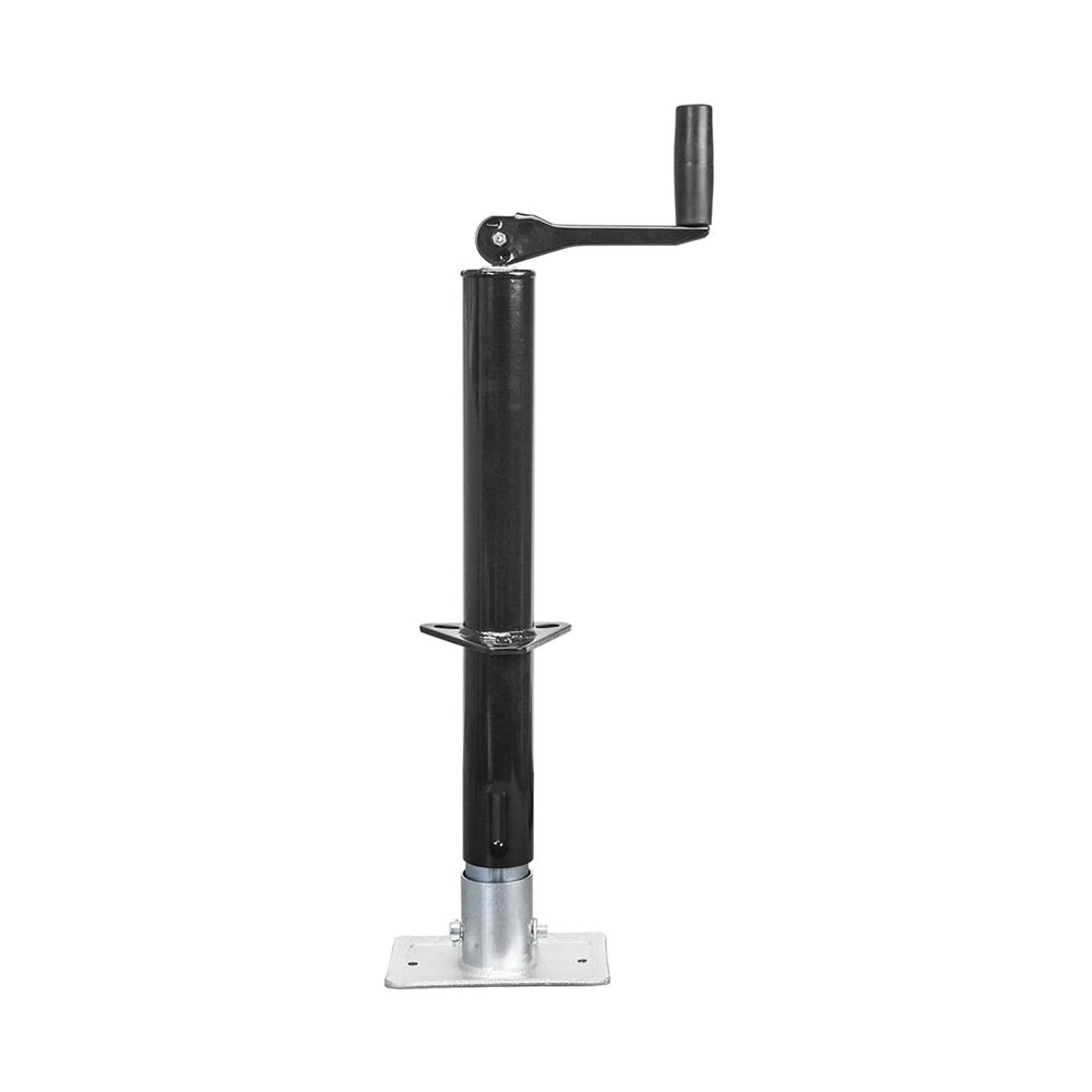 This trailer jack is rated to support up to 2000 lbs trailer tongue weight Adjustable height from 10-1/2" to 24-1/2" and fits trailer tongues 3" to 4" For long-lasting corrosion resistance against water, dirt, road salt and more, this trailer jack is protected in a durable black powder coat and zinc-plated finish To ensure plenty of clearance while towing your trailer, this trailer jack stand is equipped with a swivel bracket. The jack swings up and out of the way for towing and features a pull pin to securely lock into place Includes a limited 1 year manufacturer warranty
