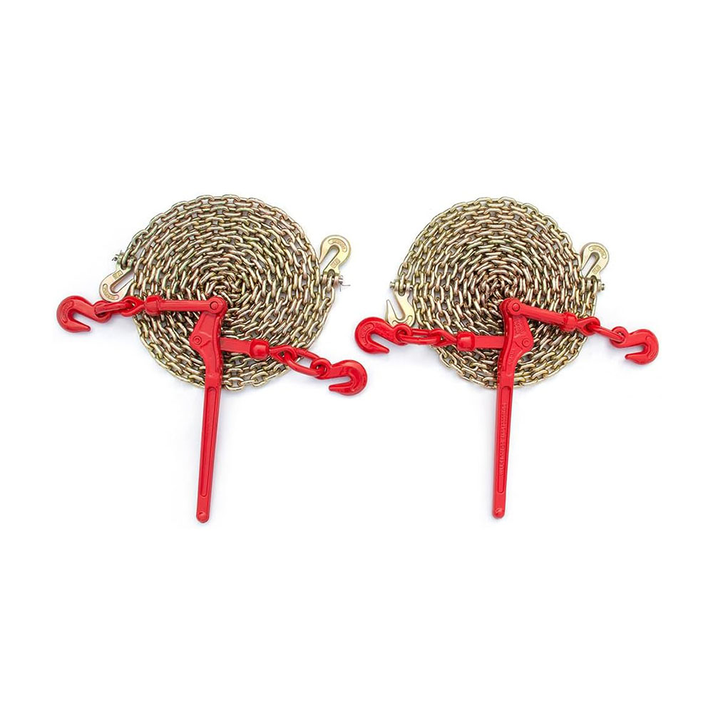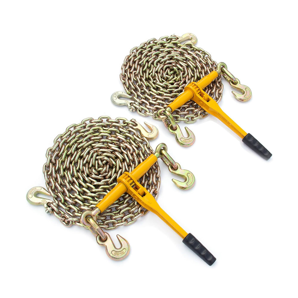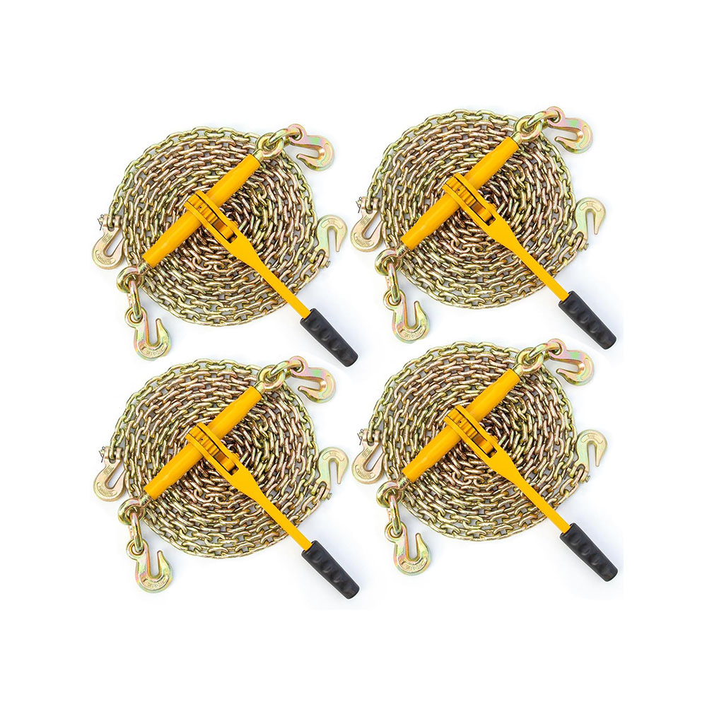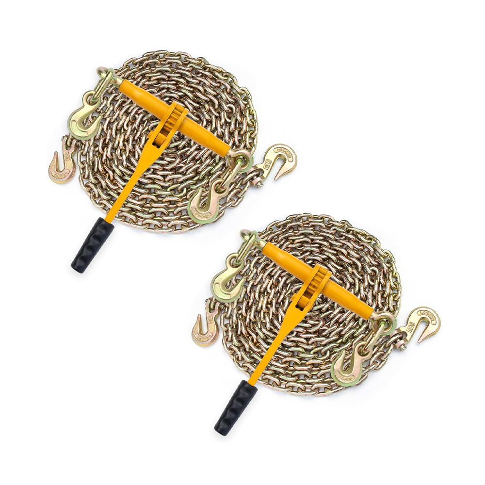 9215 Lbs Loading Capacity: The chain load binder has an excellent loading capacity of 9215 lbs and breaking strength of 33,069 lbs. The chain, 3/8'' in diameter and 20' in length, has a breaking strength of 28,101 lbs built for most industrial jobs Easy To Use: The ratchet binder provides two hooks on both ends to work with your chains. Manually adjust the width between the two hooks from 25'' to 35'' Quality Handle: The truck binders chain with 16 inches long handle provides good leverage when you are operating. Metal grip and rubber handle have anti-slip effect, comfortable to hold and easy to use Rust-Resistant Coating & Durability: Ratchet screws and ratchet hooks as well as ratchet chains are coated with a rust-resistant coating, using a high-quality powder surface coating process to extend life and durability of the chain and binder kit Multifunctional Tool: Securing heavy loads to a truck or flatbed trailer. It is also suitable for tying down, logging, and towing cargos for most industrial applications such as factories, warehouses, garages, docks, etc. Note: this load binder is not designed or approved for overhead lifting
