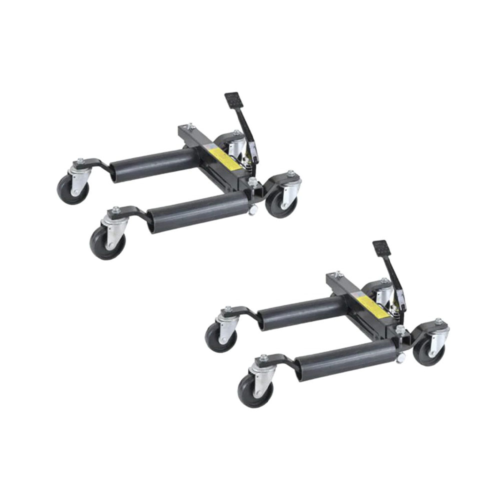 Ratcheting Foot Pedal: Using the foot pedal ratchet system enables vehicles to be jacked up and go mobile quickly and easily, your hands are free for positioning and making safe adjustments—without air, oil, or electricity Safety & Portable: The clever self-loading wheel dolly comes with a convenient carry handle, smooth-rolling swivel casters and aluminium twin rollers for secure tire support and makes moving cars around in garages and other tight quarters easy and without being time consuming and frustrating Construction: It features a rugged steel chassis with four heavy-duty 4 in. diameter (polyurethane) PU balling casters and uses a bi-directional linear ratchet for the jack portion Universal Wheels: 4 double-bearing swivel casters can rotate 360 degrees and move in all directions, making transportation more accessible, which is most suitable for single-person work. What's more, the wheels have been thickening to 3.9 inches, which is easy to get through the speed bump. In short, the wheel dolly car skates are best for most cars and light trucks Ergonomic Designs: The wheel dolly car skates include many thoughtful details. For example, the slip-proof pedal allows you to keep your hands available for other tasks. In addition, it would not be arduous to use the foot to lift the wheels, and the double rollers are flexible and rotatable. Besides, the leak-proof oil pump, fixed nuts, security latch, and thicken supporting arm improve work efficiency