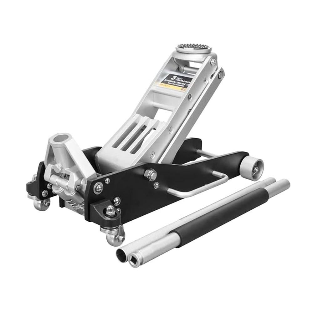 Lifting range from 3.5" to 14" allows you can gain easy access under low-profile vehicles Racing floor jack can be used for general or specialty use and features a 1.5 ton (3,000 lb) capacity Constructed of durable, high-strength aluminum and steel; Equipped with a handy side handle, making it easy to carry.It has a machined, non-slip knurled handle Foam bumper on the handle helps protect your vehicle from damage