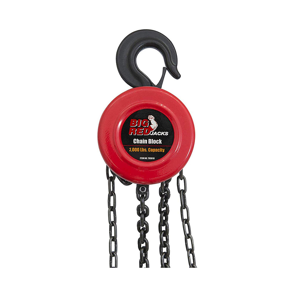 1/4" diameter chains are constructed from premium 20Mn2 alloy steel with a black oxide finish for added resistance from corrosion and grime; Load-sharing gears makes lifting heavy loads easy Manual hand lift chain block hoist features a 1 ton (2,000 lb) load capacity and is fitted with a mechanical load brake that allows for precise operation Equipped with (2) heavy-duty steel hooks with a safety latch clasp that rotate a full 360-degrees without twisting and bending; Rotating components are mounted on roller ball bearings to reduce friction and increase efficiency Ideal for industrial settings and job applications such as factories, construction sites, garages, workshops, warehouses, farms, docks, wharves, and mines Meets ASME B30.16 overhead hoist safety standards to ensure safety; Includes a limited 1 year manufacturer warranty