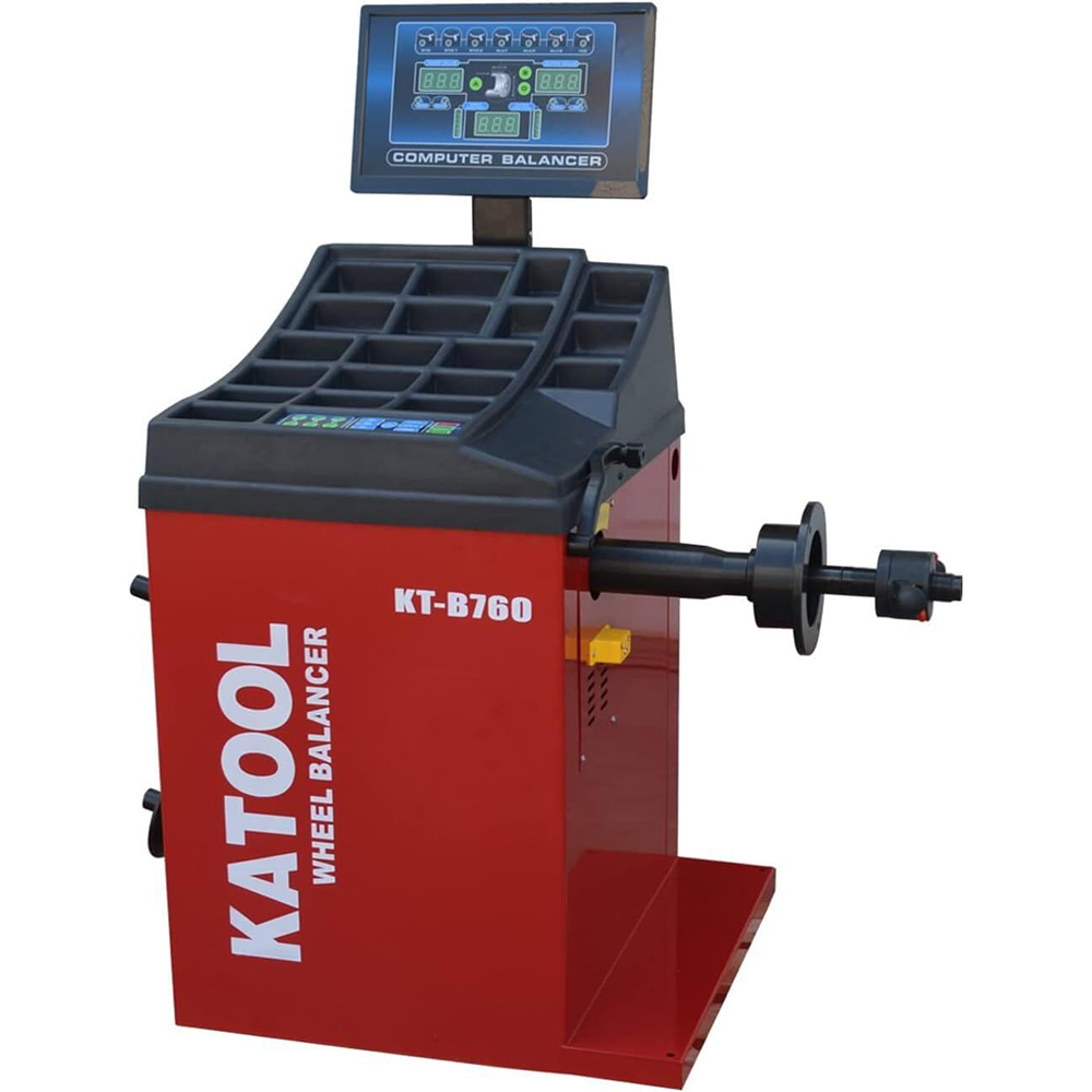 The Katool KT-B750 Wheel Balancer is a precision-driven solution for efficient wheel balancing. Crafted with a sturdy 3mm-thick high-strength steel body and solid welding, it minimizes vibrations for a stable working environment. The all-in-one pressure sensor support design, featuring 8mm thick bottom and side boards, ensures reliable and precise sensor performance. Equipped with a top-level motor and pure copper winding, this wheel balancer delivers enhanced power, fast heat dissipation, and an extended usage life. The advanced welding technology applied to the computer board makes it moisture-proof, dustproof, and antistatic, contributing to a longer operational life. Offering various balance modes tailored to different rim types, the Katool KT-B750 ensures precise balancing effects. The built-in fault diagnosis and self-calibration program with double side calibration simplify operation for users.
