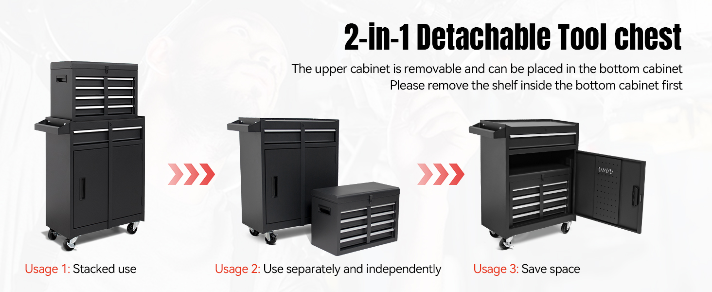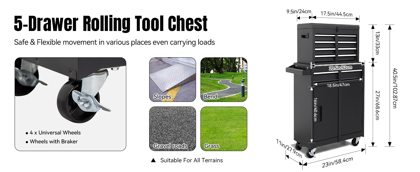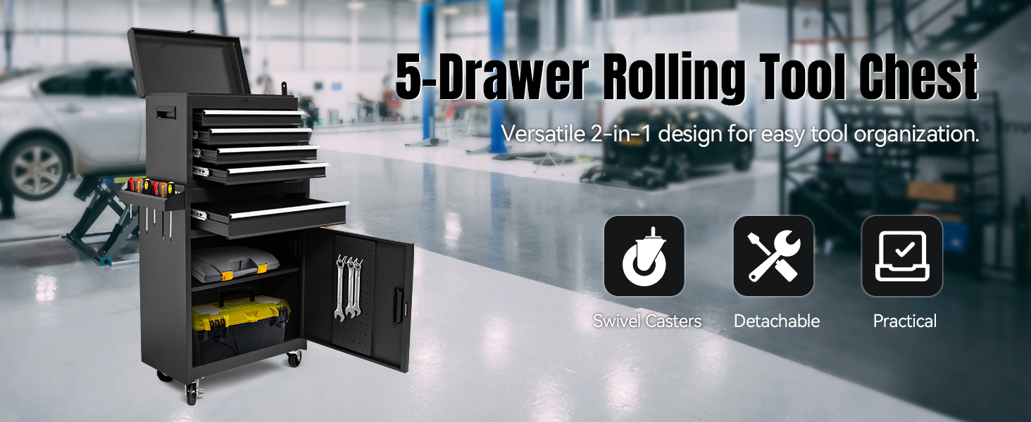• 5-Drawer Rolling Tool Chest, High Capacity, Adjustable Shelf, Lockable Drawers, Detachable 2 in 1 Mechanic Tool Box Storage Cabinet with Wheels for Garage Workshop Warehouse Repair Shop/